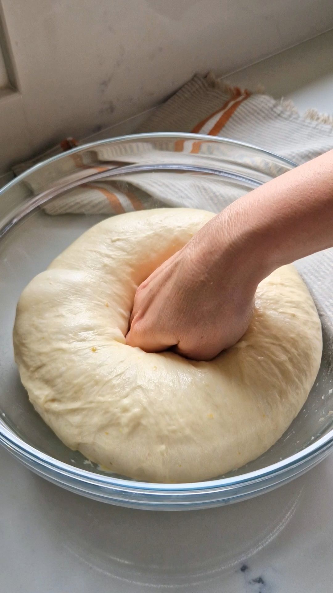Acopăr aluatul și îl las într-un loc cald până își dublează volumul (aprox. 1–2 ore).
