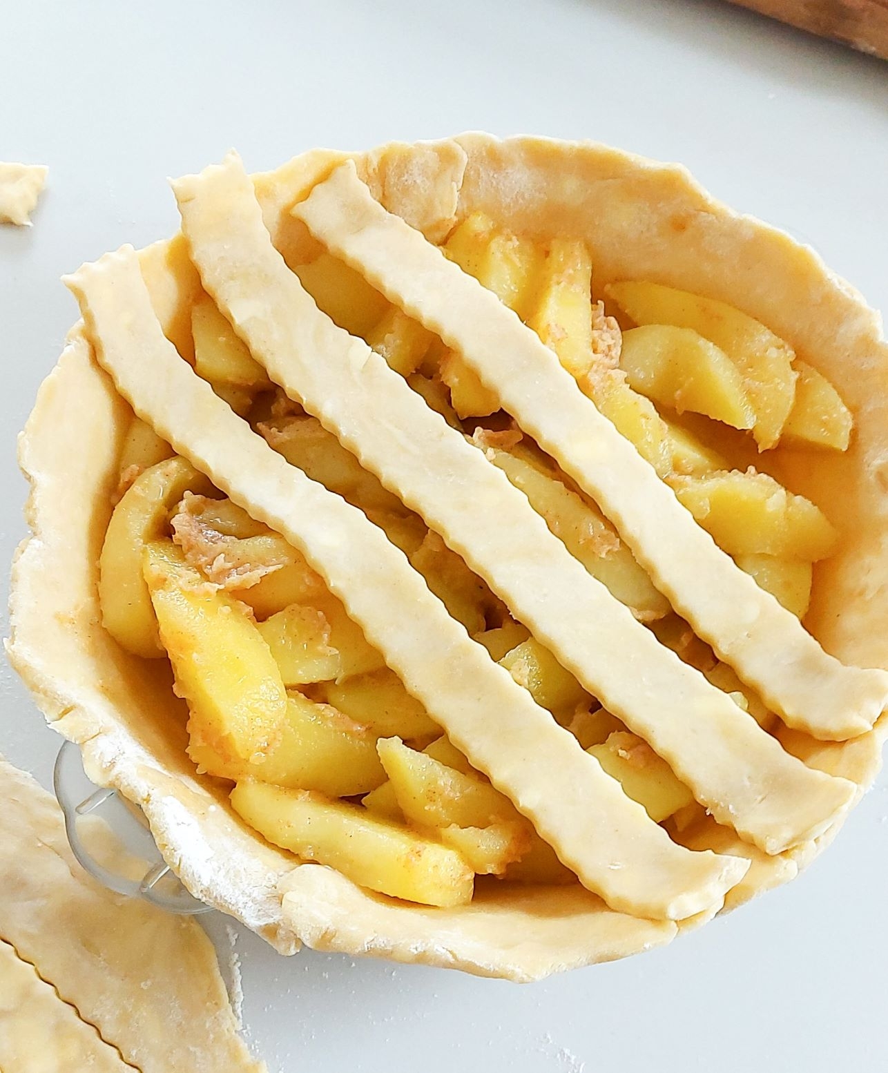 Intindeti aluatul in forma rotunda, tava mea are 20 cm diametru, aluatul il intind in jur de 23 cm. In tava , umpleti cu ceea ce va place, repetati cu cea dea doua parte de laut. Deasupra fiecare face designul preferat sau mai bine zis in functie de cum se pricepe.