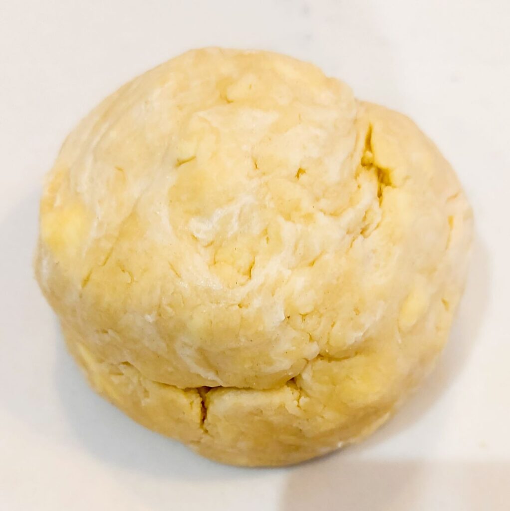 Acum incepeti sa adaugati apa rece dupa va spuneam, pe rand cate o lingura. Daca ati facut testul, iar aluatul poate fi strans, transferati-l pe masa de lucru, cu mainile impudrate de faina formati o bila rotunda. Acest lucru ar trebuii sa se faca destul de usor, iat aluatul sa nu fie lipicios.