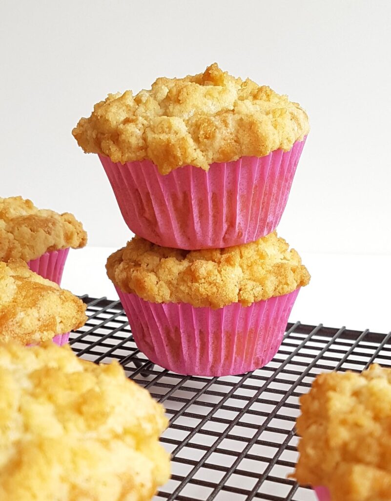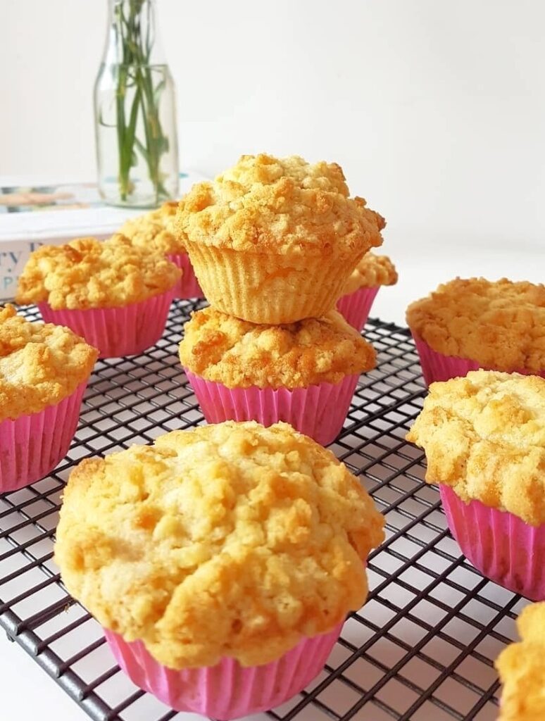 Nu renunțați la stratul de crumble de deasupra! Acesta adaugă o textură crocantă și o aromă intensă de unt și scorțișoară, care completează perfect brioșele. Este acel mic detaliu care face diferența și transformă aceste brioșe într-un desert absolut delicios.