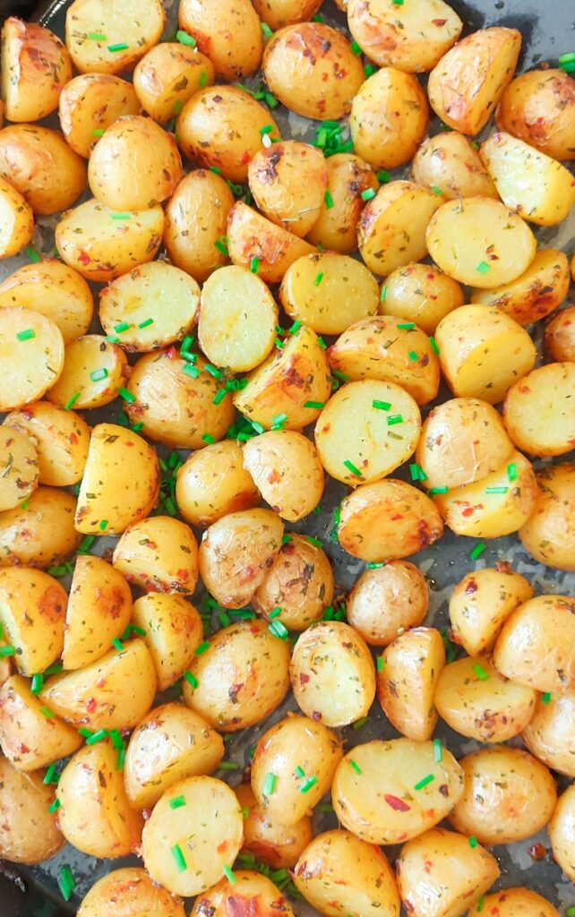 Cartofi noi la cuptor cu usturoi si rozmarin. O reteta simpla dar extrem de gustoasa de cartofi la cuptor, aromati usor crocanti la suprafata si moi in interior.
