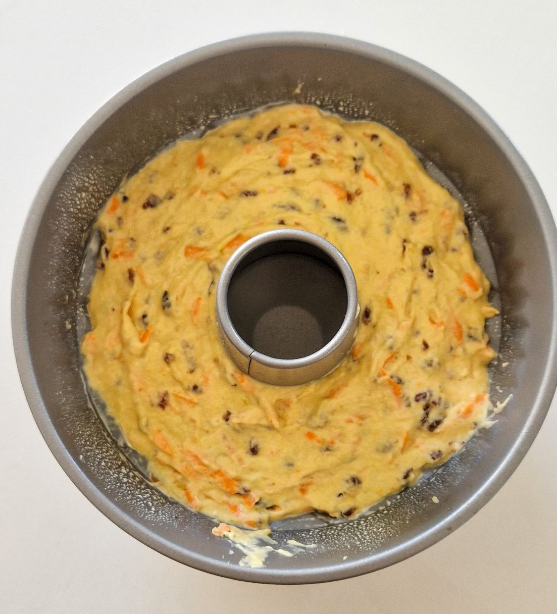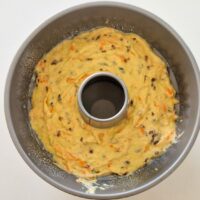 - Peste faina adugam amestecul de lichide si amestecam bine, incorporam la final si morcovii.