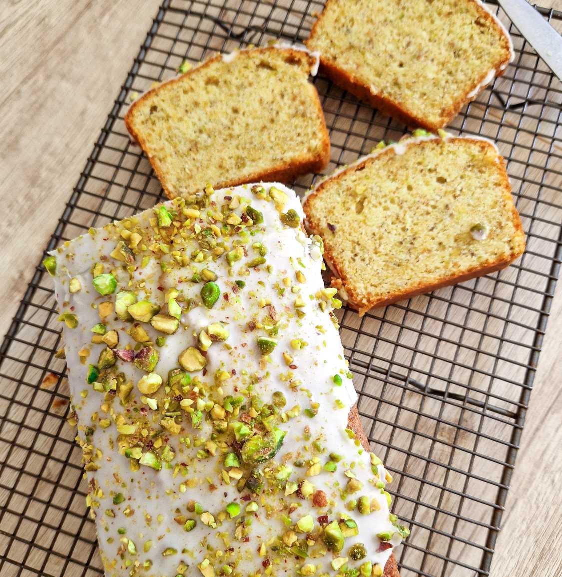Chec cu fistic și glazură de lămâie