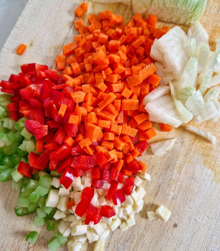 - 1 ardei gras roșu, tocat cubulețe