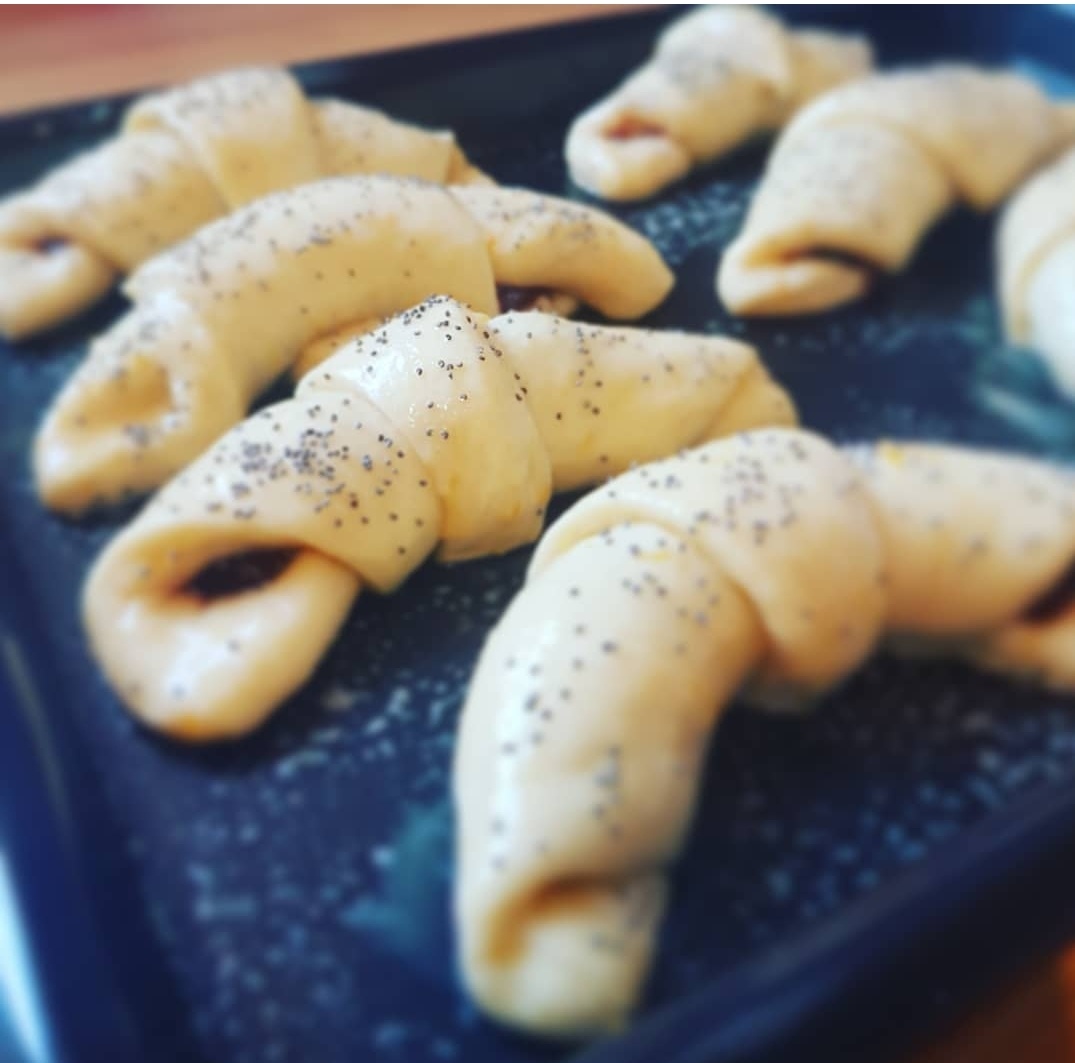O reteta usoara dar absolut delicioasa de Cornuri pufoase umplute cu gem si nuci. Sunt super pufoase, se fac usor si contin doar ingrediente de baza si pe care cu siguranta le gasiti deja in bucataria voastra.