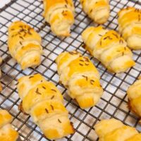 Aceste Cornulețe fragede cu untură și brânză sărată sunt deliciul oricărei zile speciale. Fragede și sfărâmicioase, cu o umplutură de brânză și un praf de chimen parfumat, se topesc pur și simplu în gură. Sunt ideale pentru un weekend petrecut cu familia, fie la un film sau un joc, când vrei să savurezi ceva bun făcut în casă.