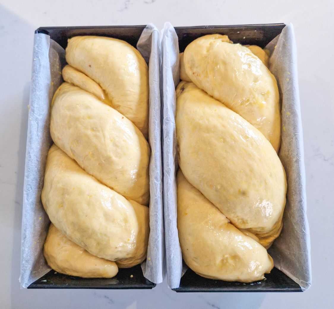 Lăsarea la crescut: Pune cozonacii în tăvi tapetate cu hârtie de copt și lasă-i la crescut pentru o oră.