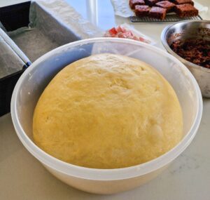 - Este important să lași aluatul să se dospească încet, deoarece folosim doar 1 plic de drojdie pentru 1 kg de făină. Deși este cantitatea de drojdia recomandată pentru 500 g de făină, procesul de dospire lent va permite aluatului să crească treptat și să aibă o textură fină și aerată.