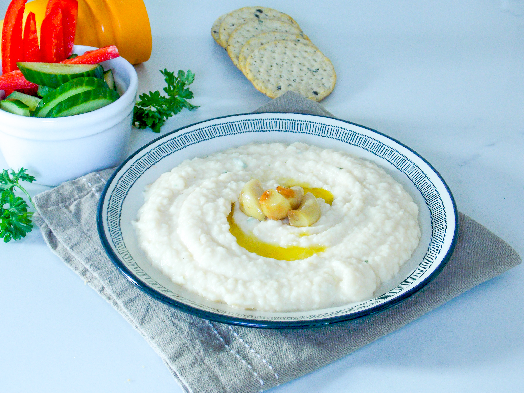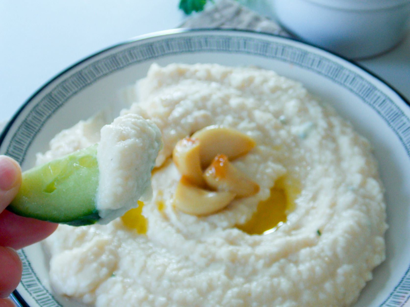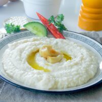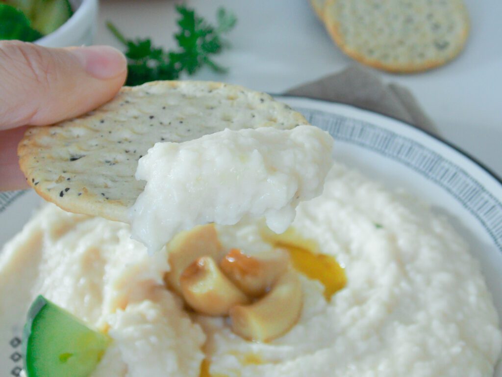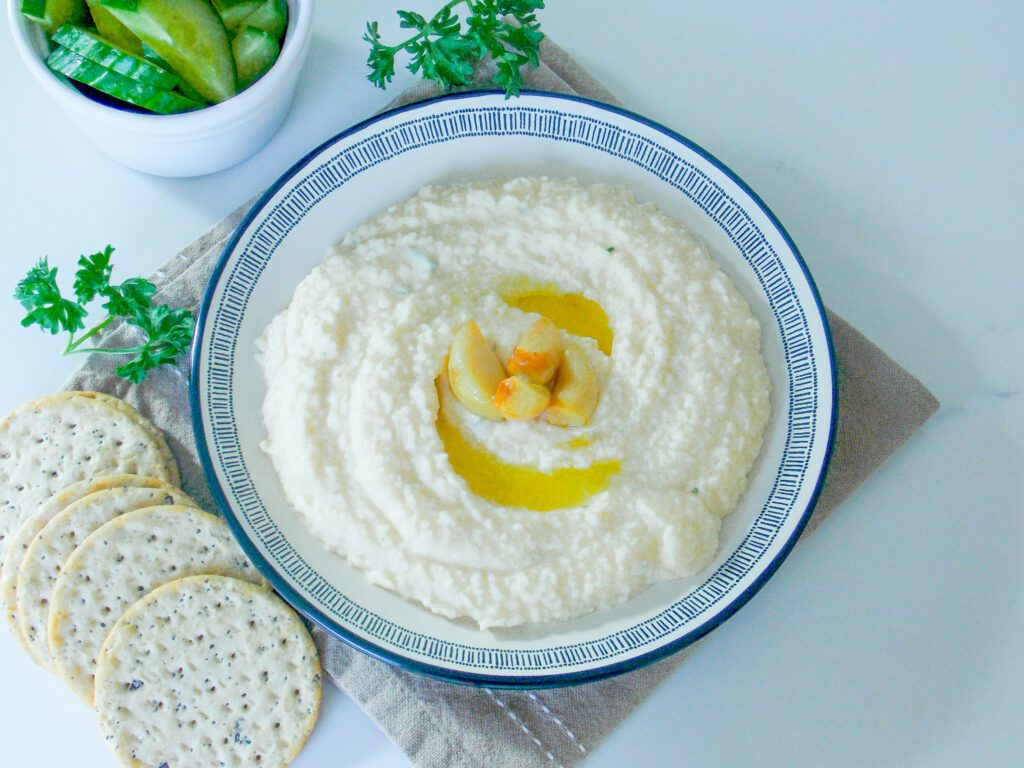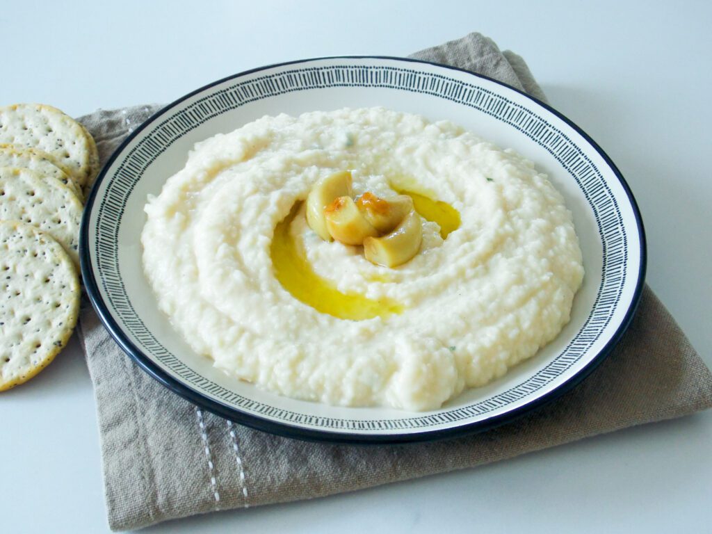 Aceasta fasole batuta cu usturoi copt este cremoasa, aromata cu usturoi, ierburi aromatice si suc de lamaie.
