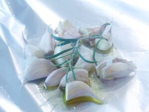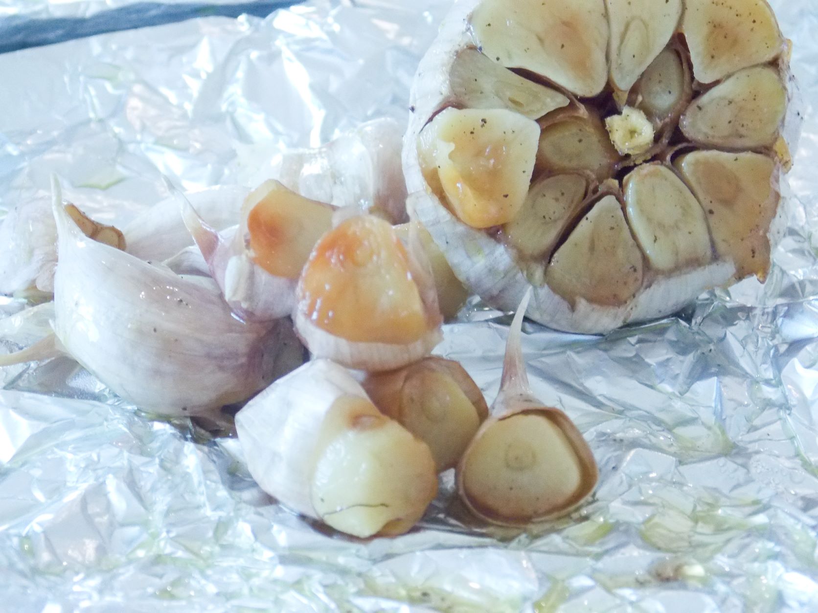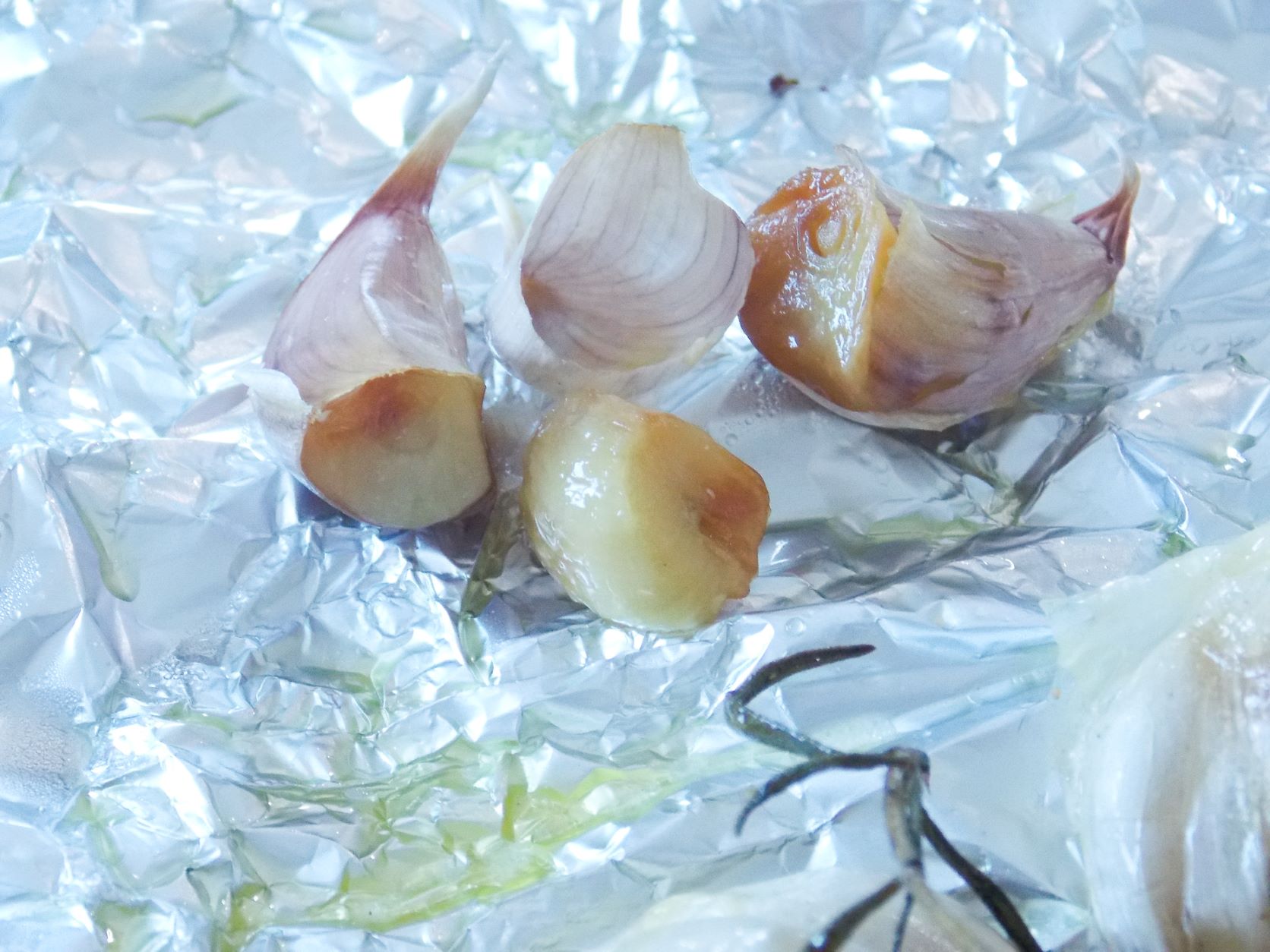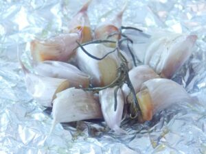 - Impaturiti in sus marginile foliei de aluminiu astfel incat sa sigilati usturoiul in interior.