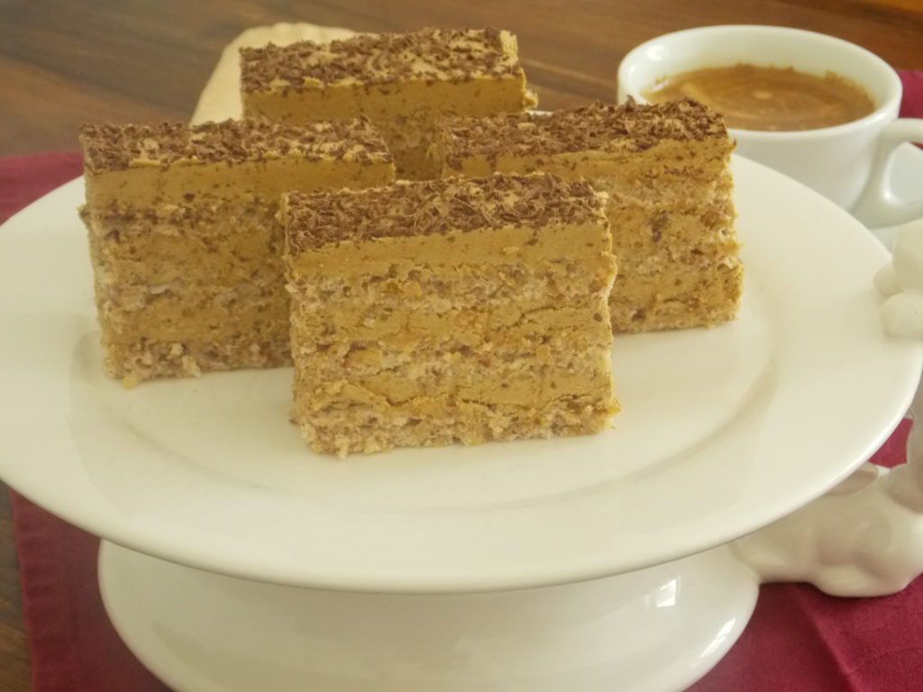 Ultima mea propunere este aceasta Prajitura cu nuci si crema de cafea. Este pentru toti cei care iubesc desertul cu cafea, cu gust intens si aroma deosebita.