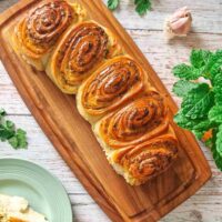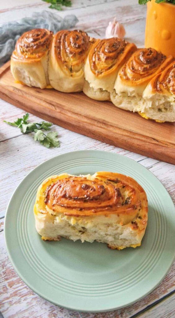 Aceste Rulouri cu branza, usturoi si patrunjel proaspat sunt moi si pufoase, cu aroma placuta de usturoi si patrunjel si umplute cu branza sarata.