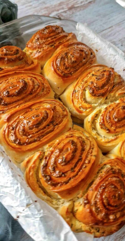 - Taiem cu un cutit ascutit in rulouri de circa 4 cm fiecare si le punem in tava in care o sa fie coapte. Lasam la crescut circa 30 de minute.