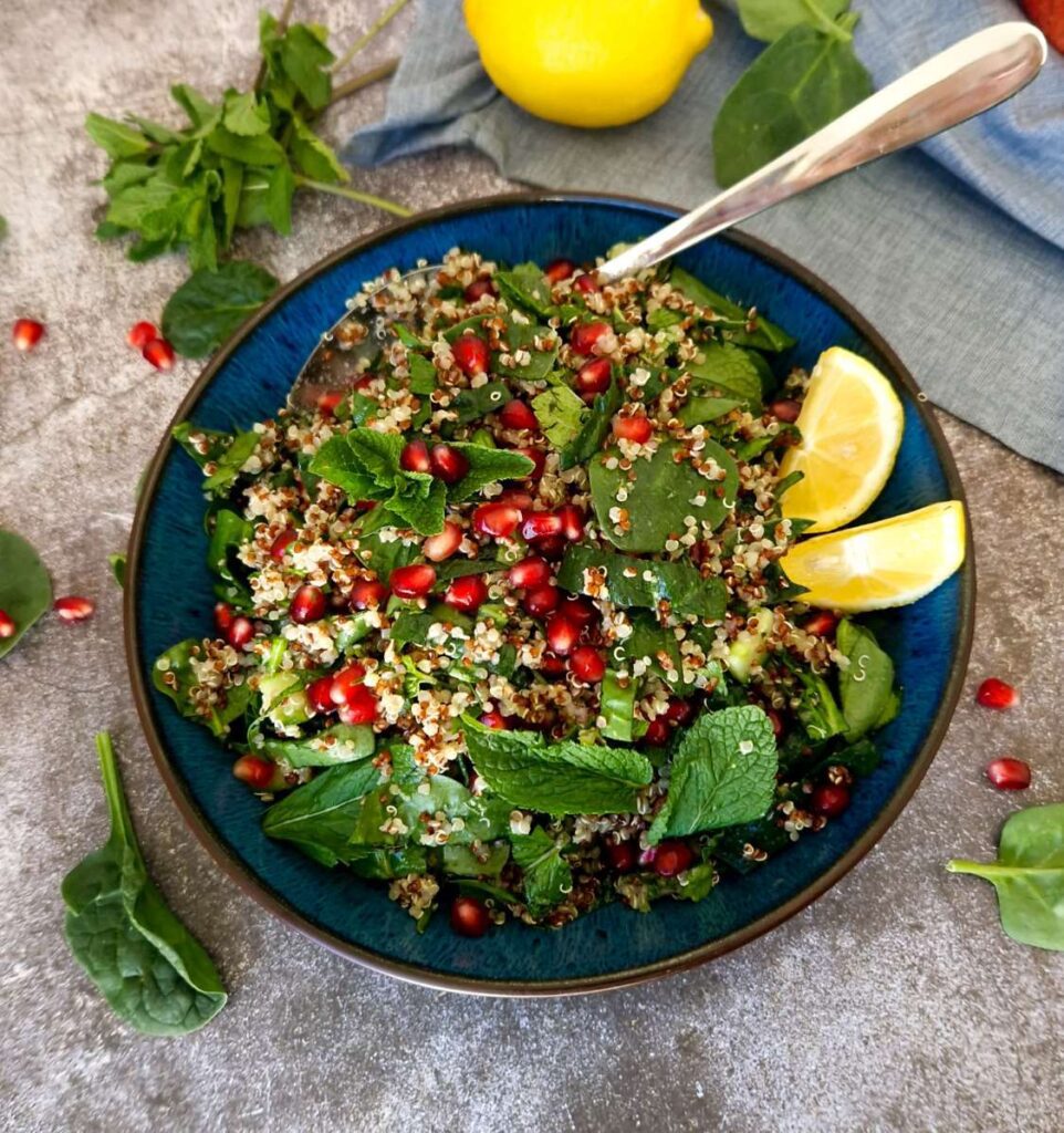 Aceasta Salata de quinoa si spanac este o combinatie echilibrata in ingrediente bogate in nutrienti. Este simplu si usor de pregatit si este o explozie de arome si texturi.