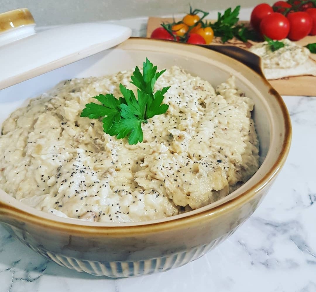 - Adăugarea cepei și maionezei: Tocați ceapa și adăugați-o peste vinete. Adăugați maioneza, amestecați bine și potriviți de sare